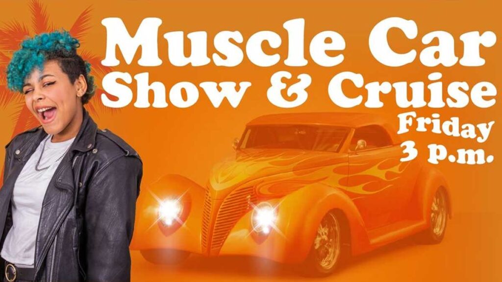 Feel the pulse of excitement every Friday night at our Muscle Car Show! Starting at 3:00pm, guests can walk along Trophy Row to see a world of show-quality muscle cars from 1964 and newer—and older hot rods and classics dating up to 1985(No Patina Allowed).