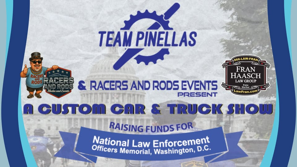 Team Pinellas is a group of local Law Enforcement Officers who support and participate in the Police Unity Tour. The tour consists of a 250 mile bicycle ride ending at the Fallen Officer Memorial in Washington, D.C. and fundraising for the National Law Enforcement Officers Memorial Fund. Sponsored by the Fran Haasch Law Group and hosted by Racers and Rods Events and DJ Brian Akin and Akin One Promotions. Come for the vehicles of the Pinellas County Sheriff’s Department, live music, raffles, custom awards and more! $15.00 pre-register at https://www.zeffy.com/en-US/ticketing/team-pinellas-car-show or $20.00 day of show. All proceeds with go directly to the Fallen Officer Fund.
